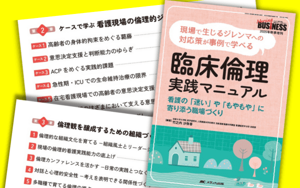 看護現場の「迷い」や「もやもや」に寄り添う解説。倫理的感受性と実践力が身につきます!